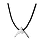 Mountain Necklace features a clean mountain silhouette with sharp, minimal lines. Set on a black cord, it has a bold, understated look.